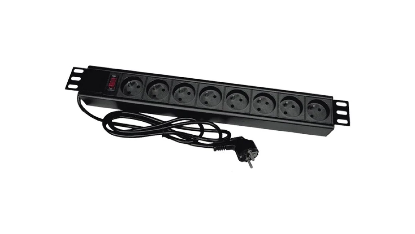 Listwa zasilająca rack 19 cali PDU gniazdo 8 x CEE 7/5 wtyk CEE 7/7 z wyłącznikiem