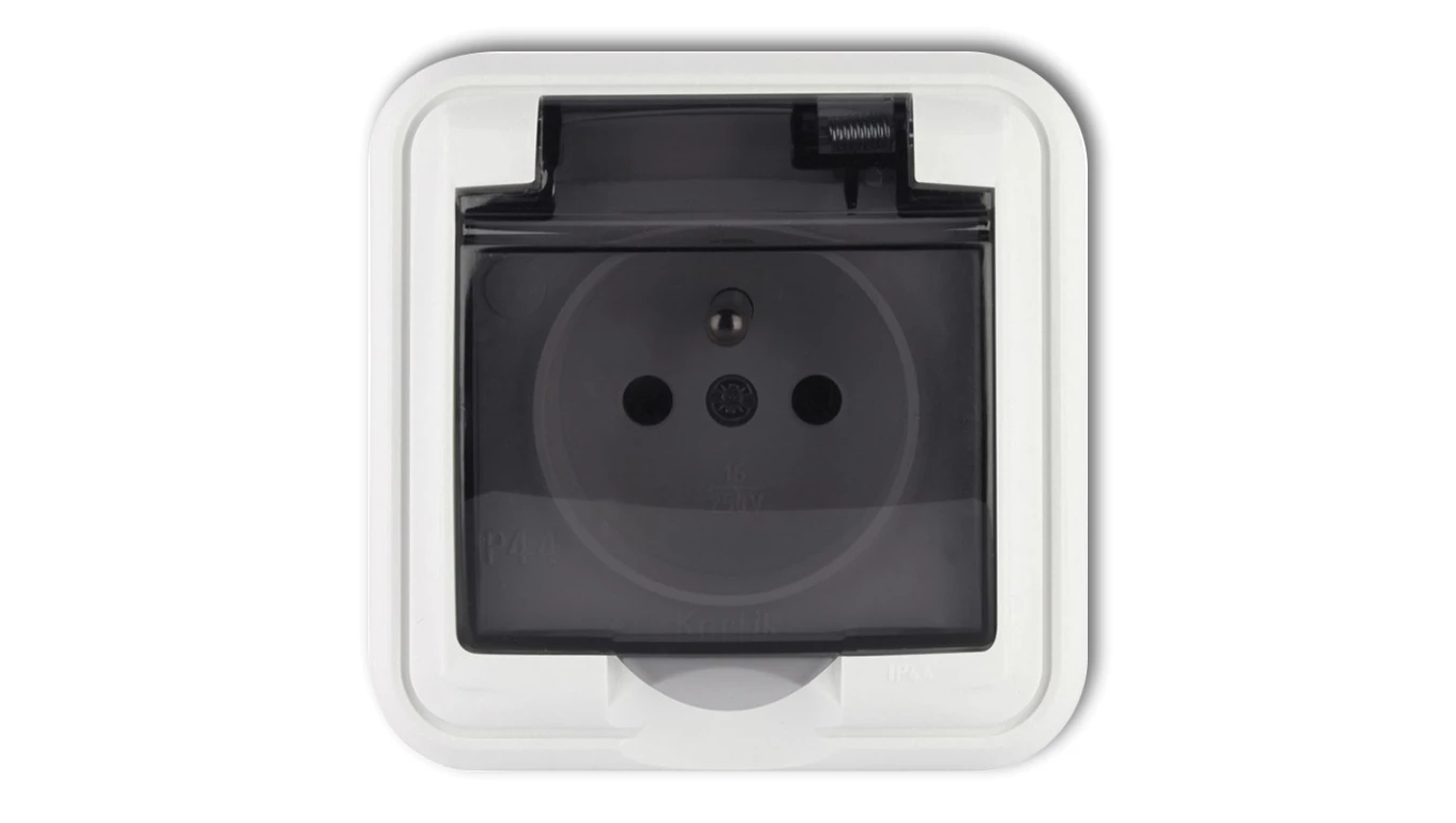 LIZA Gniazdo bryzgoszczelne z/u (klapka dymna) biały GPH-1zd