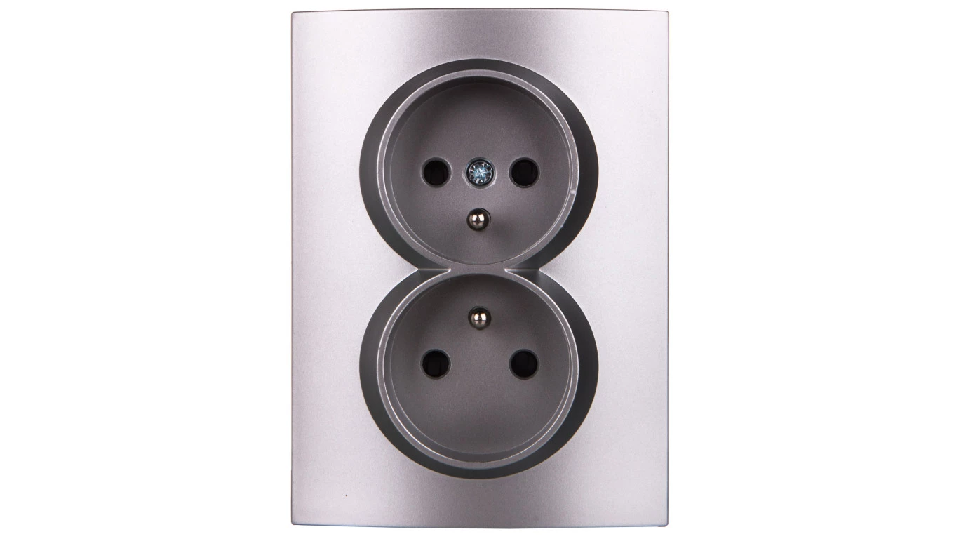 LOGI Gniazdo podwójne 2x2P+Z kompletne z przesłoną styków śrubowe 16A 250V Srebrny 25211