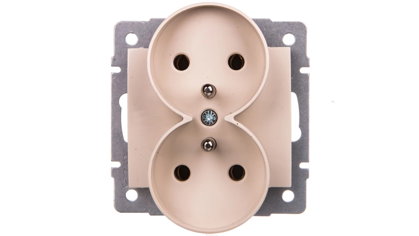 LOGI Gniazdo podwójne 2x2P+Z śrubowe 16A 250V Kremowy 25151