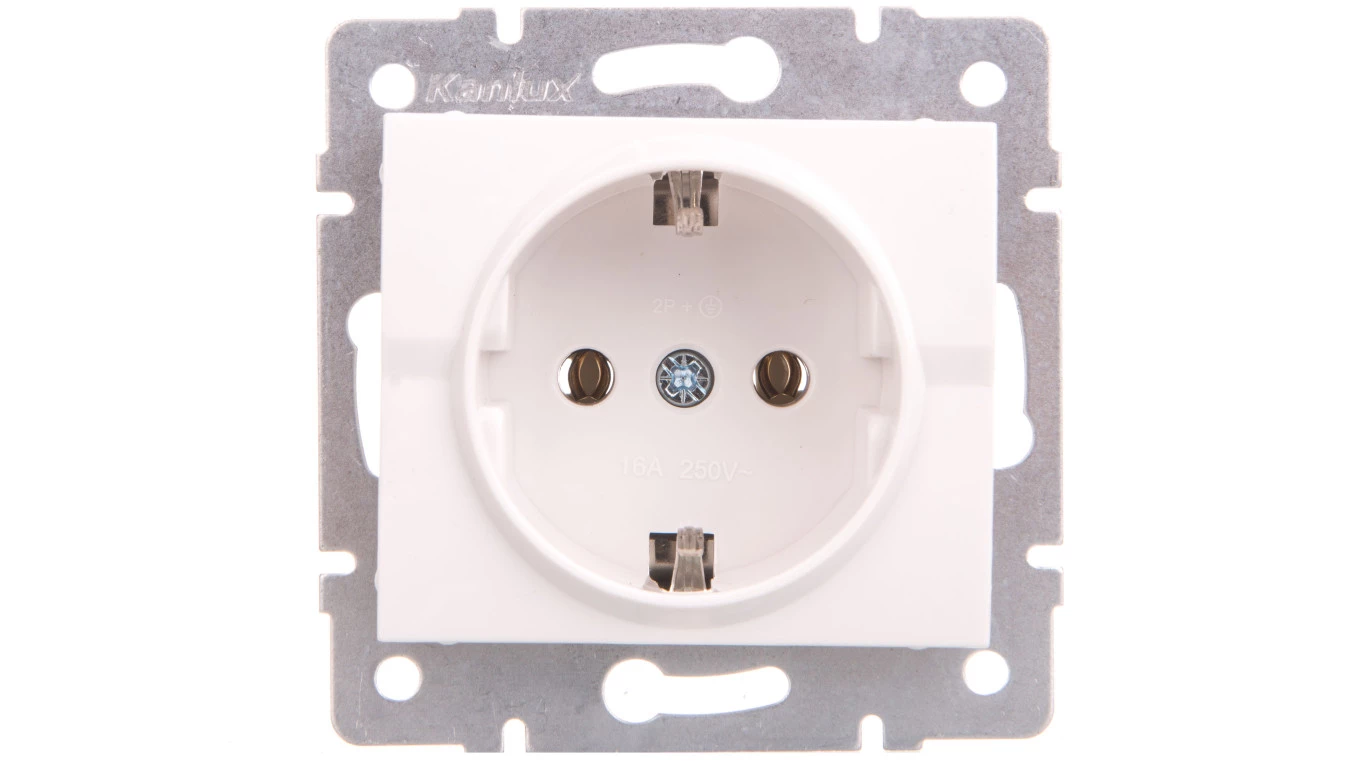 LOGI Gniazdo pojedyncze 2P+Z Schuko śrubowe 16A 250V Biały 25085