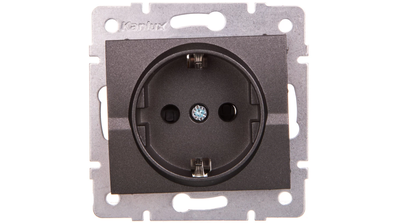 LOGI Gniazdo pojedyncze 2P+Z Schuko z przesłoną styków śrubowe 16A 250V Grafit 25266