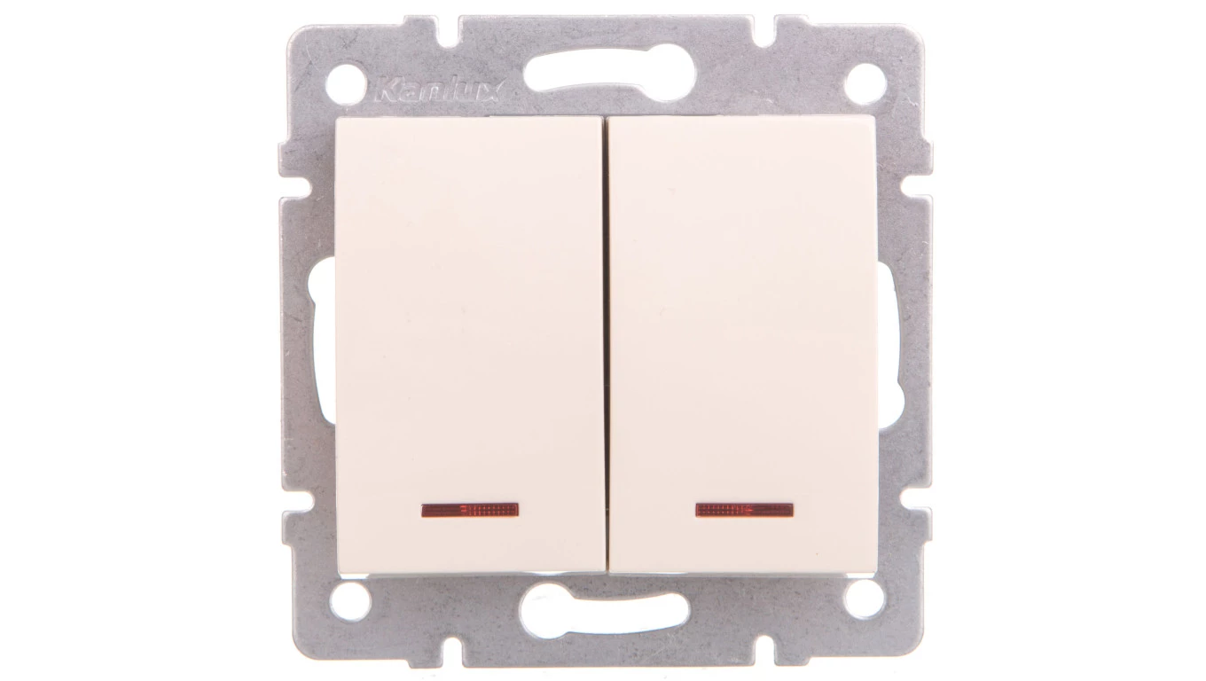 LOGI Łącznik zwierny podwójny LED śrubowy 10AX 250V kremowy 021023103 25130