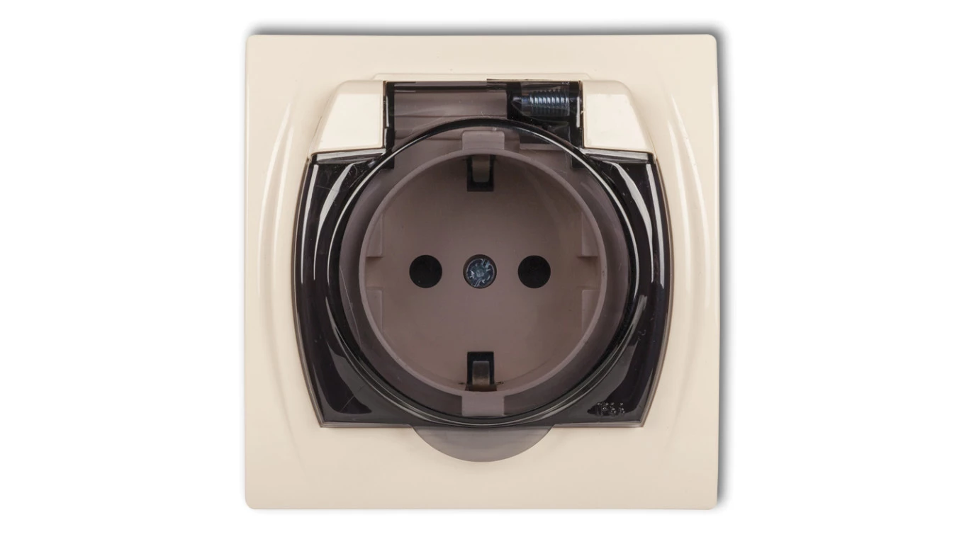 AKCENT Gniazdo bryzgoszczelne z/u Schuko IP44 klapka przezroczysta beżowe GPH-1AS/01/d