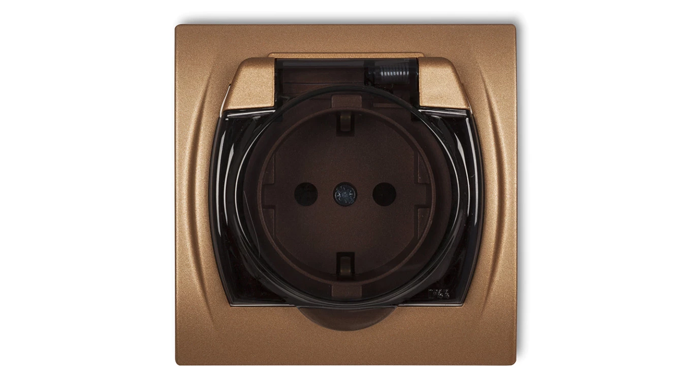 TREND Gniazdo bryzgoszczelne z/u SCHUKO (klapka brązowy metalik) grafitowy 11GPB-1sp