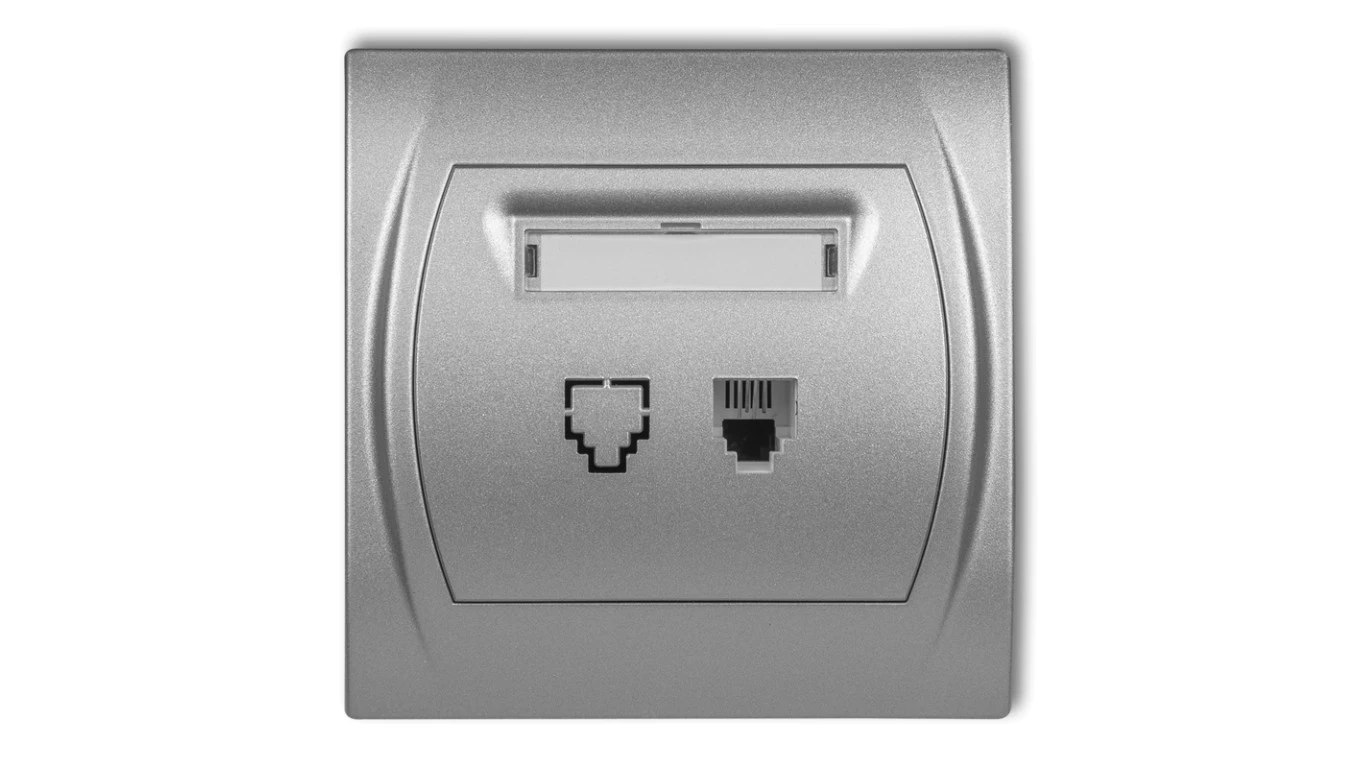 DECO Gniazdo antenowe pojedyncze typu F (SAT) + gniazda komputerowe pojedyncze 1xRJ45 kat. 5e 8-stykowy srebrny metalik 7DGFK-1