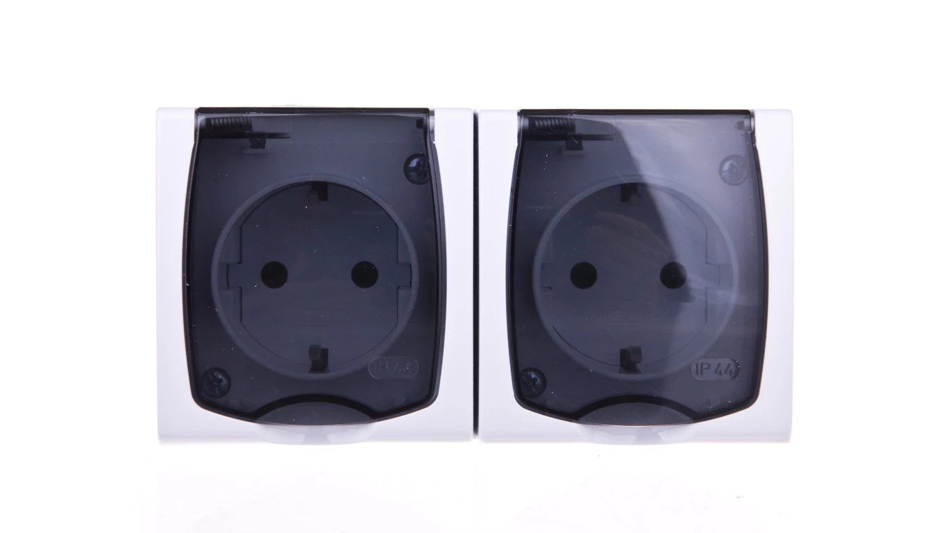 MADERA Gniazdo hermetyczne podwójne z/u Schuko IP44 z przesłonami klapka przezroczysta białe GNH-2NSP/00/d
