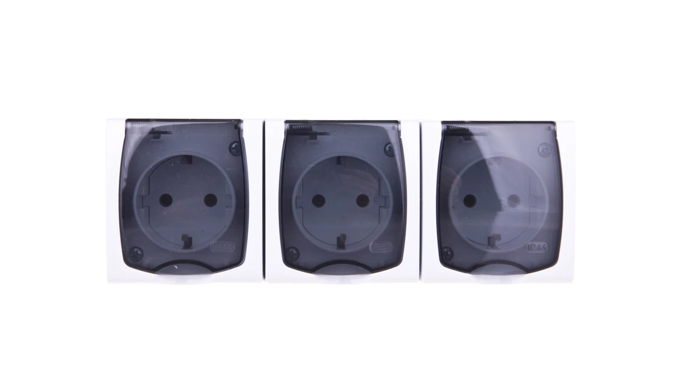 MADERA Gniazdo hermetyczne potrójne z/u Schuko IP44 klapka przezroczysta białe GNH-3NS/00/d