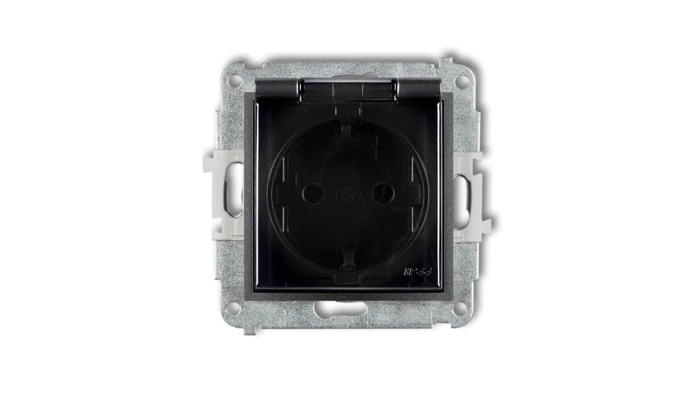 Merten System M Gniazdo pojedyncze z/u 16A IP20 z przesłonami i klapką antracyt MTN2614-0414