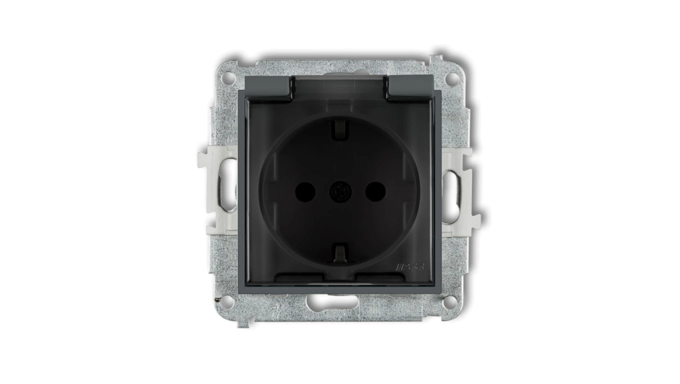 LOGI Gniazdo pojedyncze 2P+Z z przesłoną styków śrubowe Czarny mat 33603