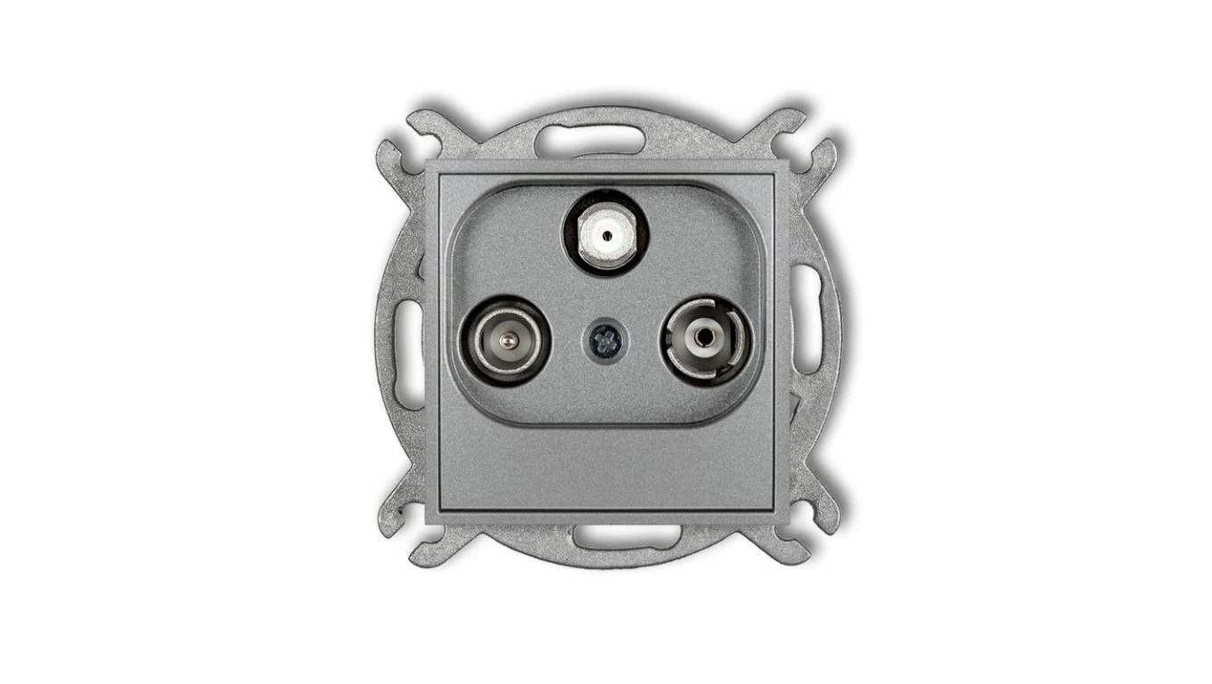 MINI Gniazdo antenowe RTV-SAT przelotowe 10dB srebrny metalik 7MGSP