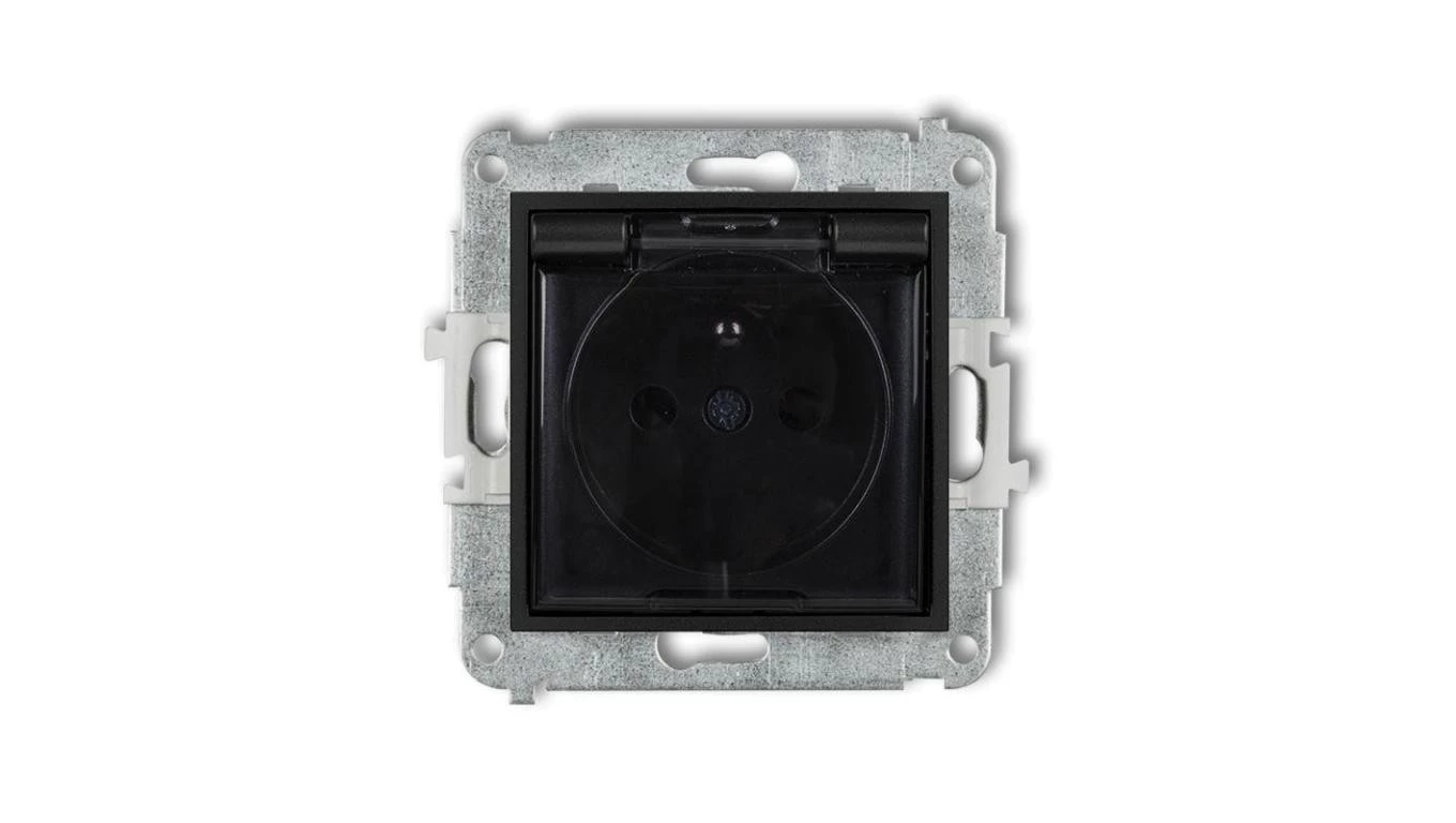 MINI Gniazdo bryzgoszczelne z/u IP44 z przesłonami klapka dymna czarny mat 12MGPB-1zdp