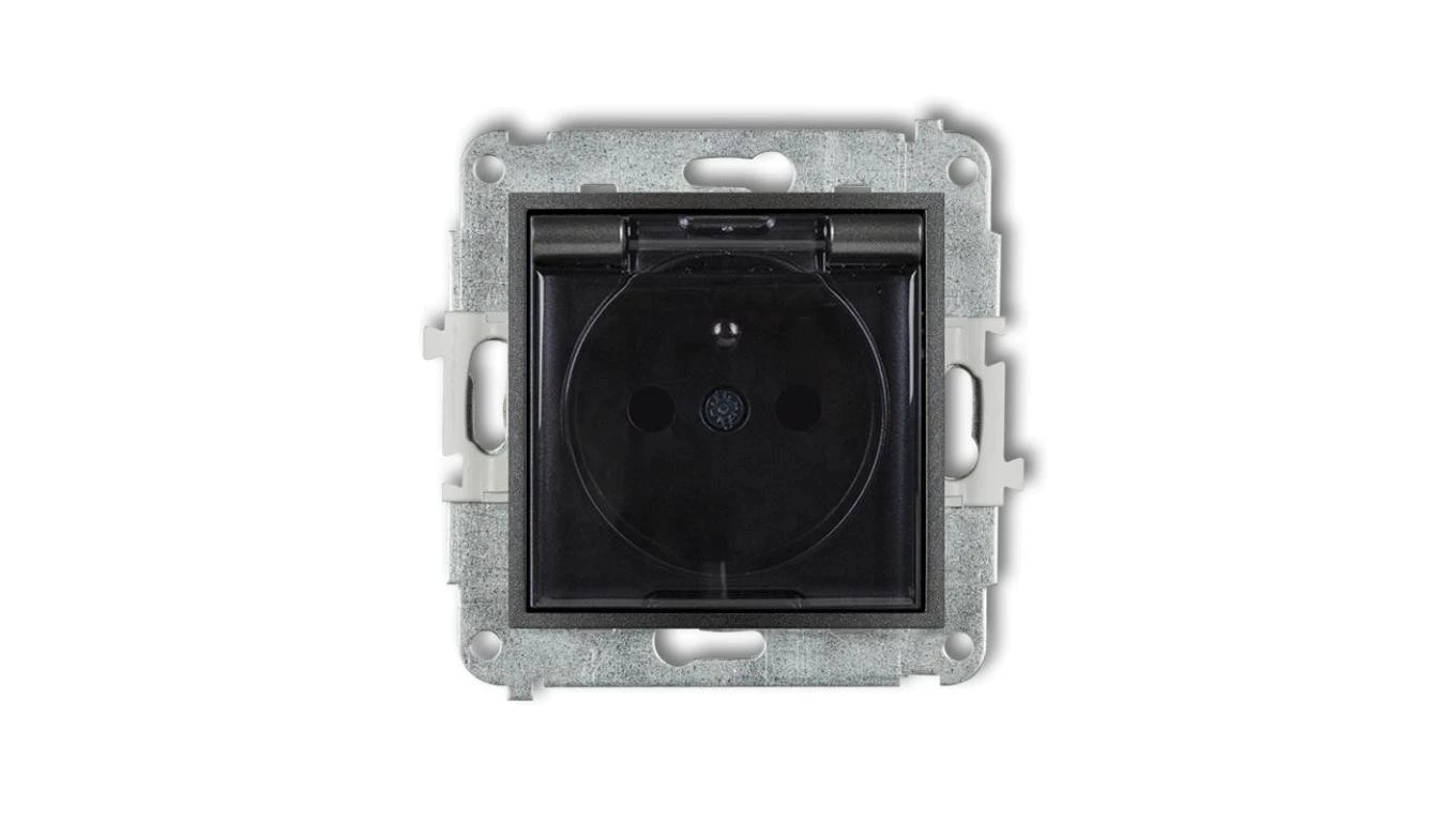 MINI Gniazdo bryzgoszczelne z/u IP44 z przesłonami klapka dymna grafitowe 11MGPB-1zdp