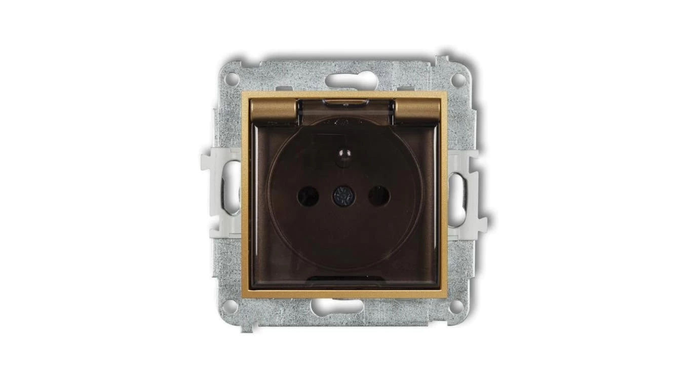 MINI Gniazdo bryzgoszczelne z/u IP44 z przesłonami klapka dymna złote 29MGPB-1zdp