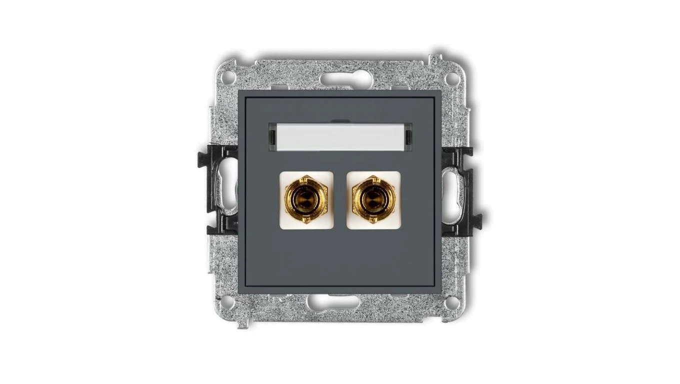 MINI Gniazdo głośnikowe pojedyncze (typu banan - czerwony i czarny pozłacany 4 mm2 do lutowania) grafitowy mat 28MGG-3