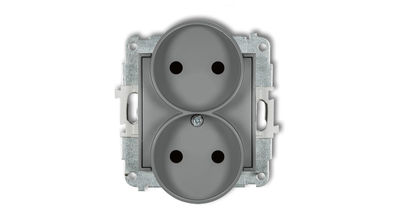 MINI Gniazdo podwójne b/u z przesłonami szary mat 27MGPR-2p