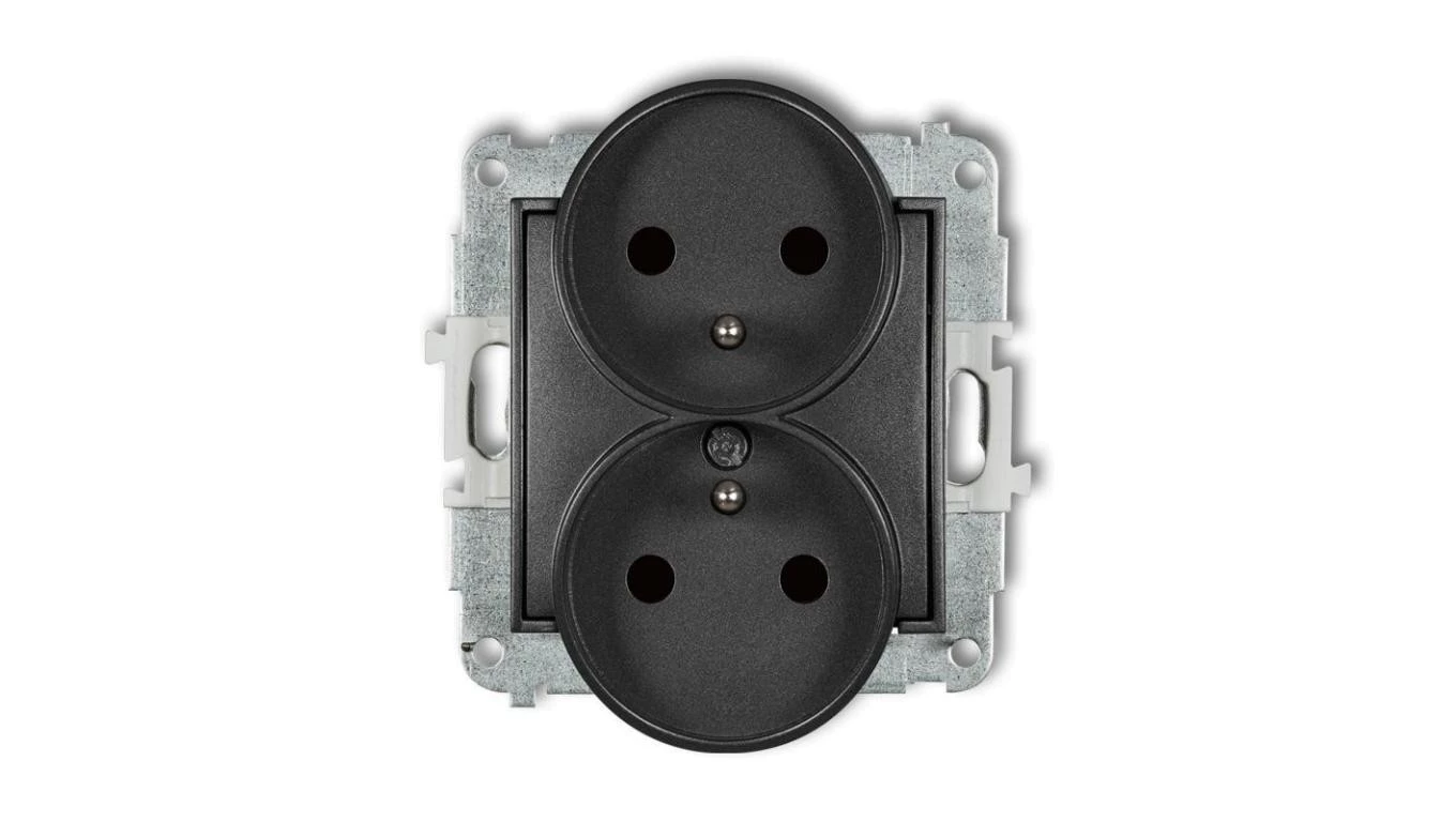 MINI Gniazdo podwójne z/u z przesłonami grafitowe 11MGPR-2zp