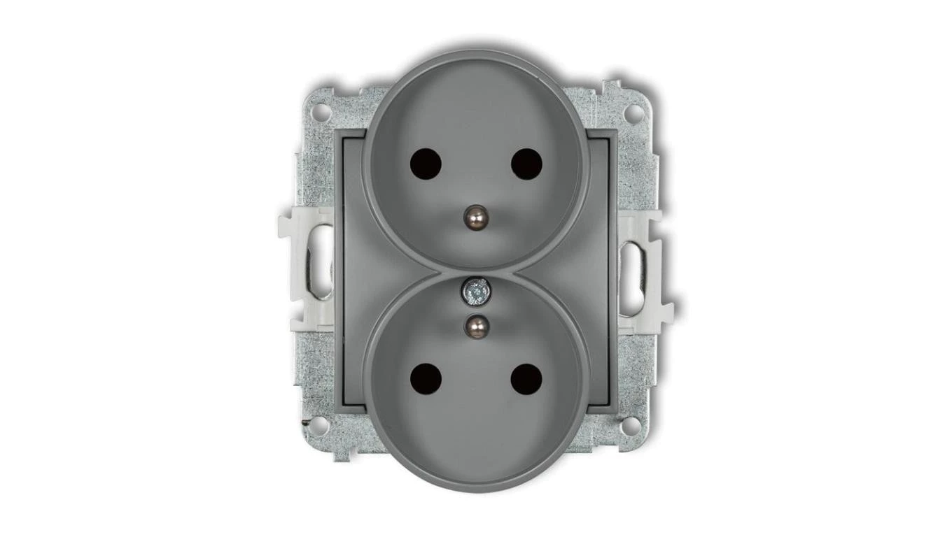 MINI Gniazdo podwójne z/u z przesłonami szary mat 27MGPR-2zp