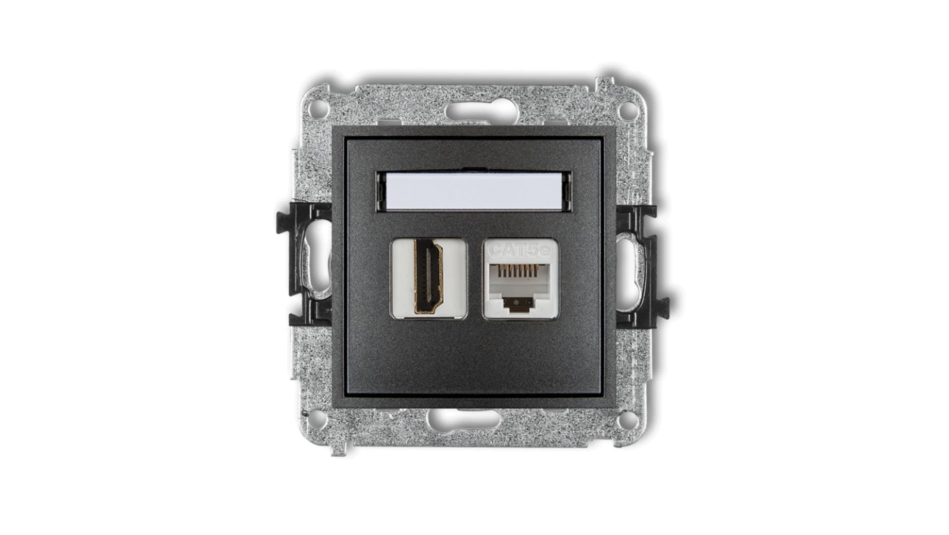 MINI Gniazdo pojedynczego HDMI + gniazdo komputerowe 1xRJ45 kat.5e 8-stykowy grafitowy 11MGHK