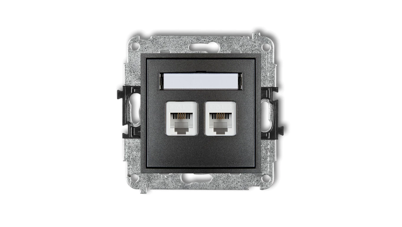 MINI Gniazdo telefoniczne podwójne 2xRJ11 4-stykowy beznarzędziowe grafitowy 11MGT-2