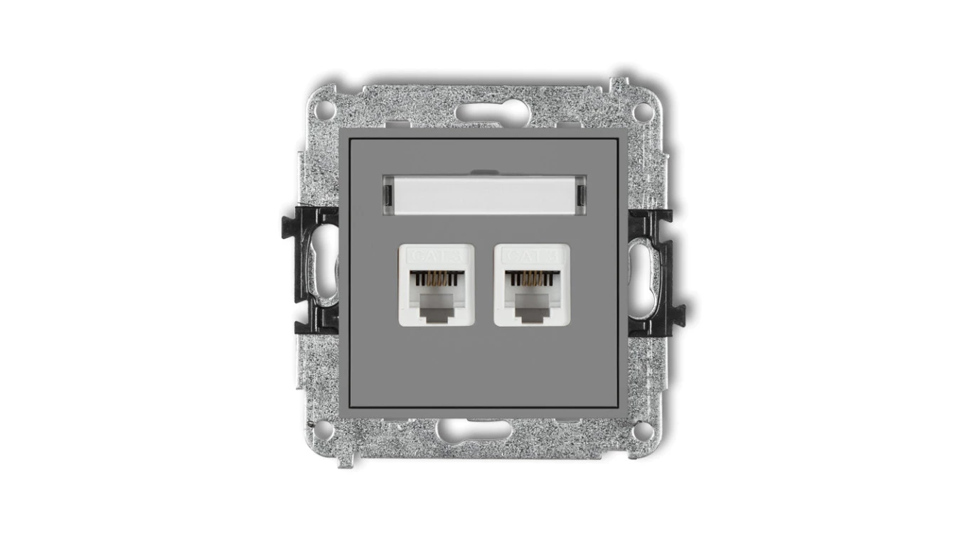 MINI Gniazdo telefoniczne podwójne 2xRJ11 4-stykowy beznarzędziowe szary mat 27MGT-2