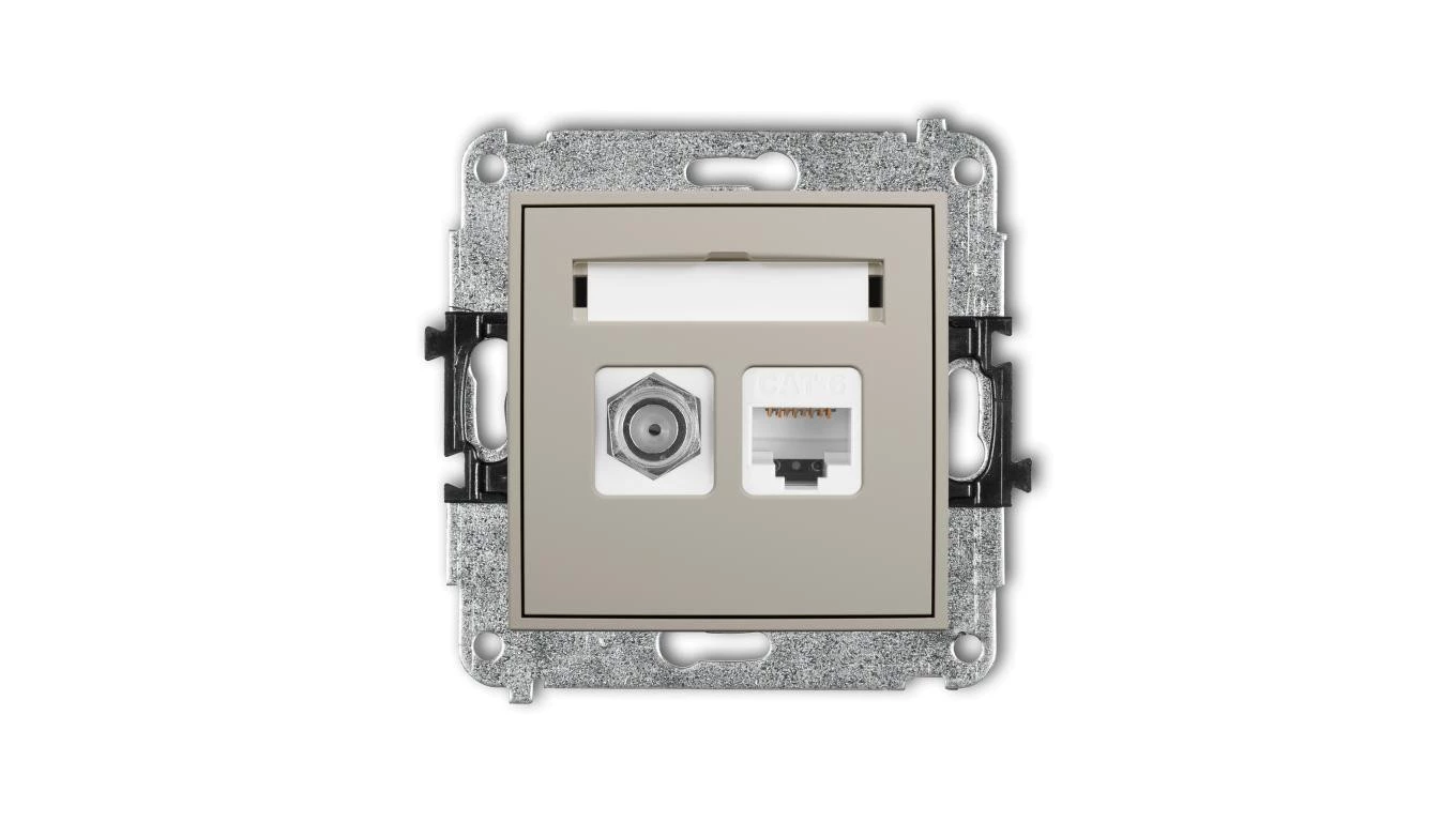 MINI Mechanizm gniazda antenowego poj. typu F (SAT) + gniazda komp. poj. 1xRJ45, kat. 6, 8-stykowy taupe 60MGFK-3