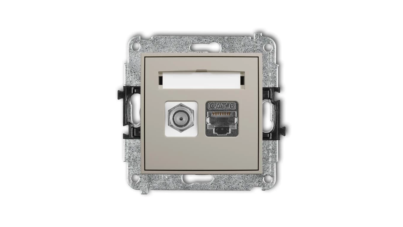 MINI Mechanizm gniazda antenowego poj. typu F (SAT) + gniazda komp. poj. 1xRJ45, kat. 6 ekranowany, 8-stykowy taupe 60MGFK-5