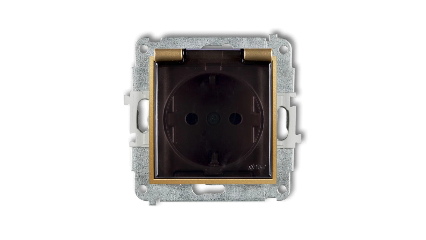 MINI Mechanizm gniazda bryzgoszczelnego z uziemieniem SCHUKO 2P+Z (klapka dymna, przesłony torów prądowych) złoty 29MGPB-1sdp