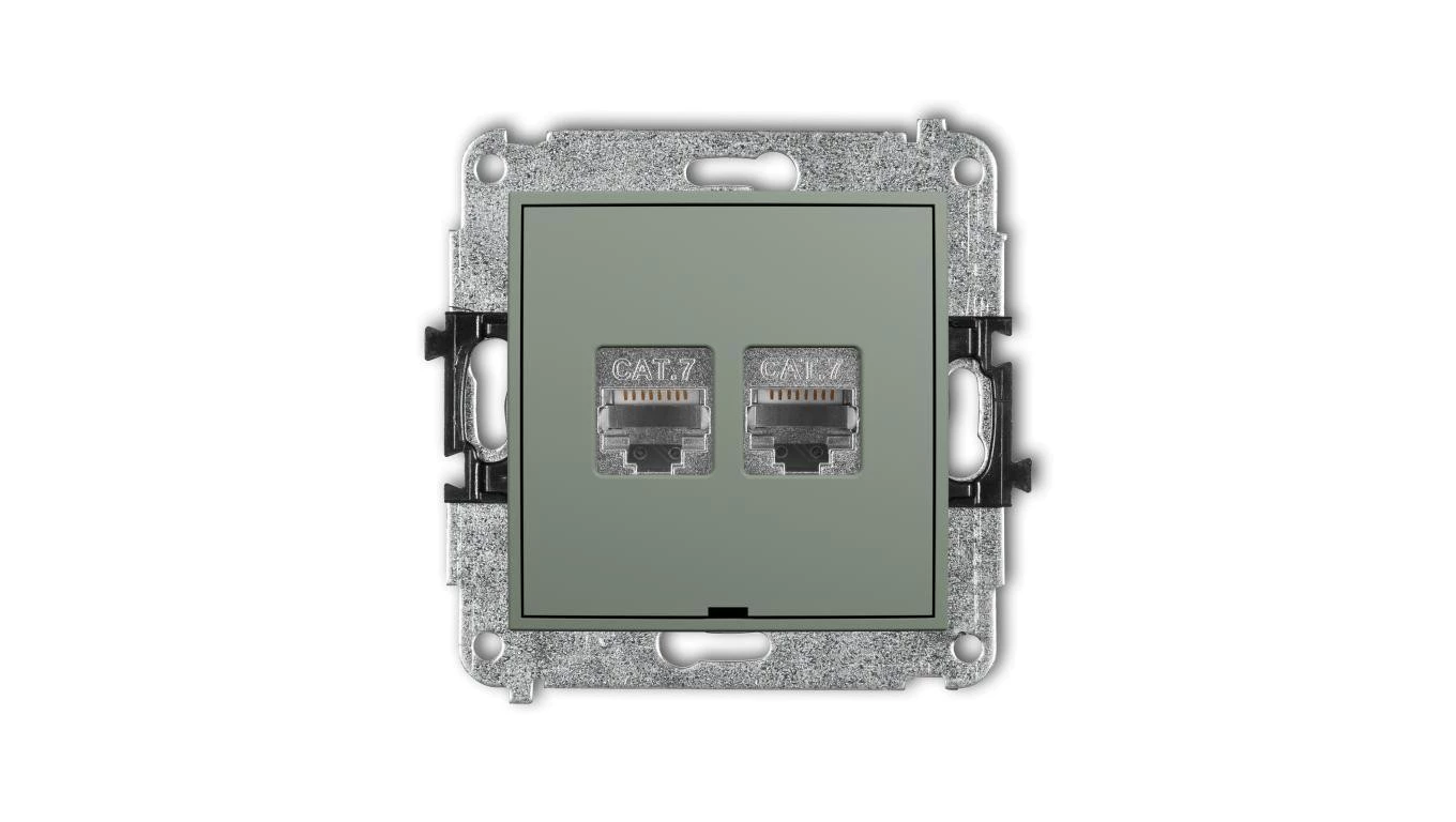 MINI Mechanizm gniazda komputerowego podwójnego 2xRJ45, kat. 7, ekranowany, 8-stykowy, bez pola opisowego szałwiowy 61MGKBO-10