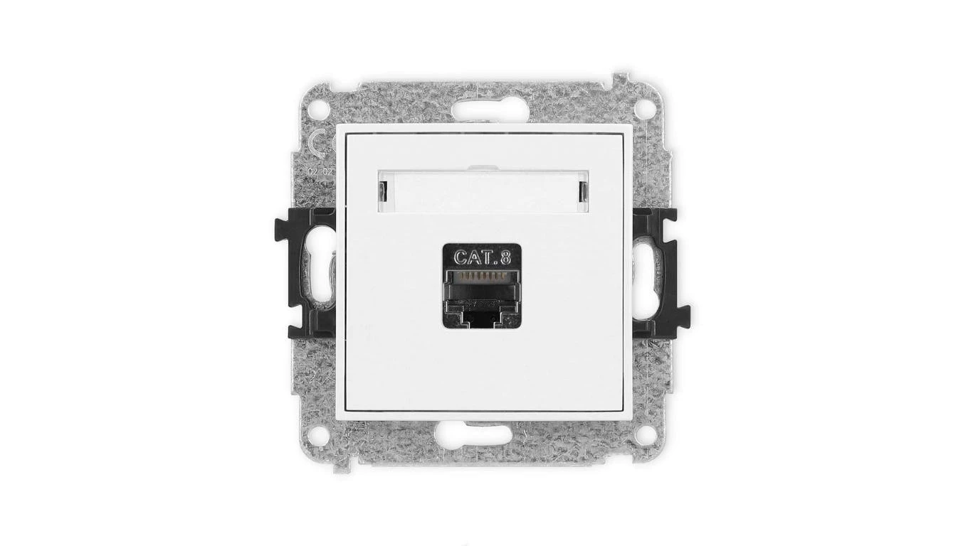 MINI Mechanizm gniazda komputerowego pojedynczego 1xRJ45, kat. 8, ekranowane, 8-stykowy biały mat 25MGK-11