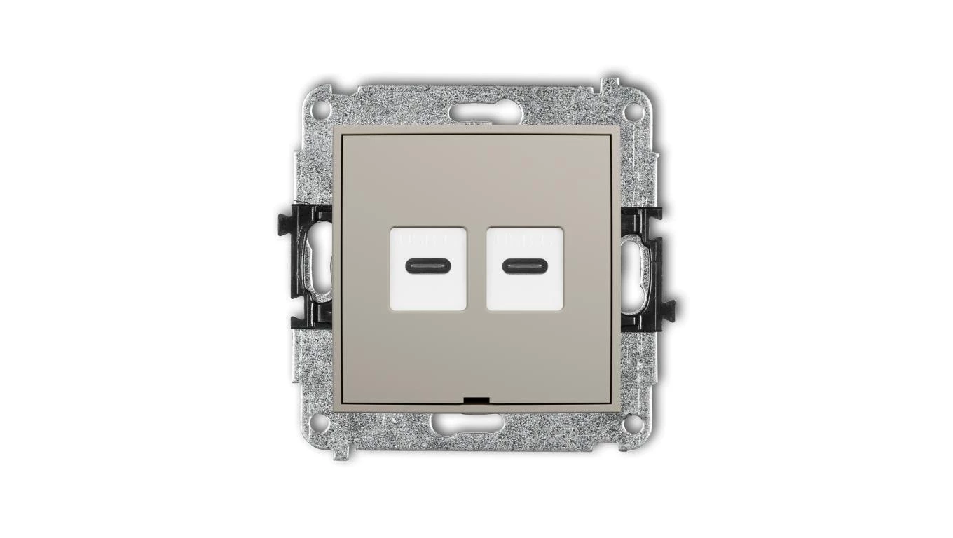 MINI Mechanizm gniazda podwójnego 2xUSB C-C, bez pola opisowego taupe 60MGUSBBO-8