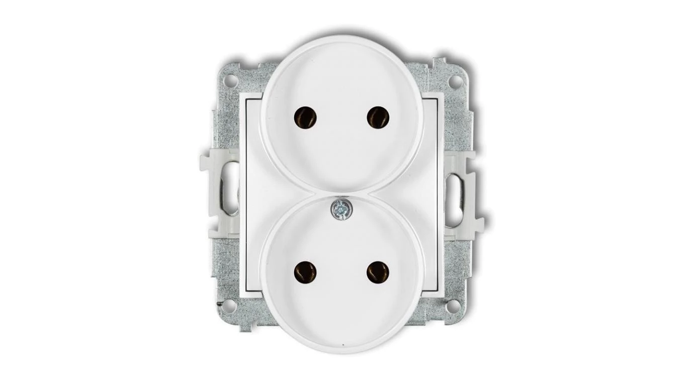MINI Mechanizm gniazda podwójnego do ramki bez uziemienia 2x2P (bez przesłon torów prądowych) biały mat 25MGPR-2