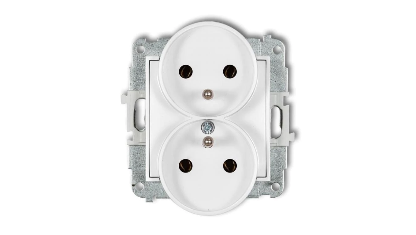 MINI Mechanizm gniazda podwójnego do ramki z uziemieniem 2x(2P+Z) (bez przesłon torów prądowych) biały mat 25MGPR-2z