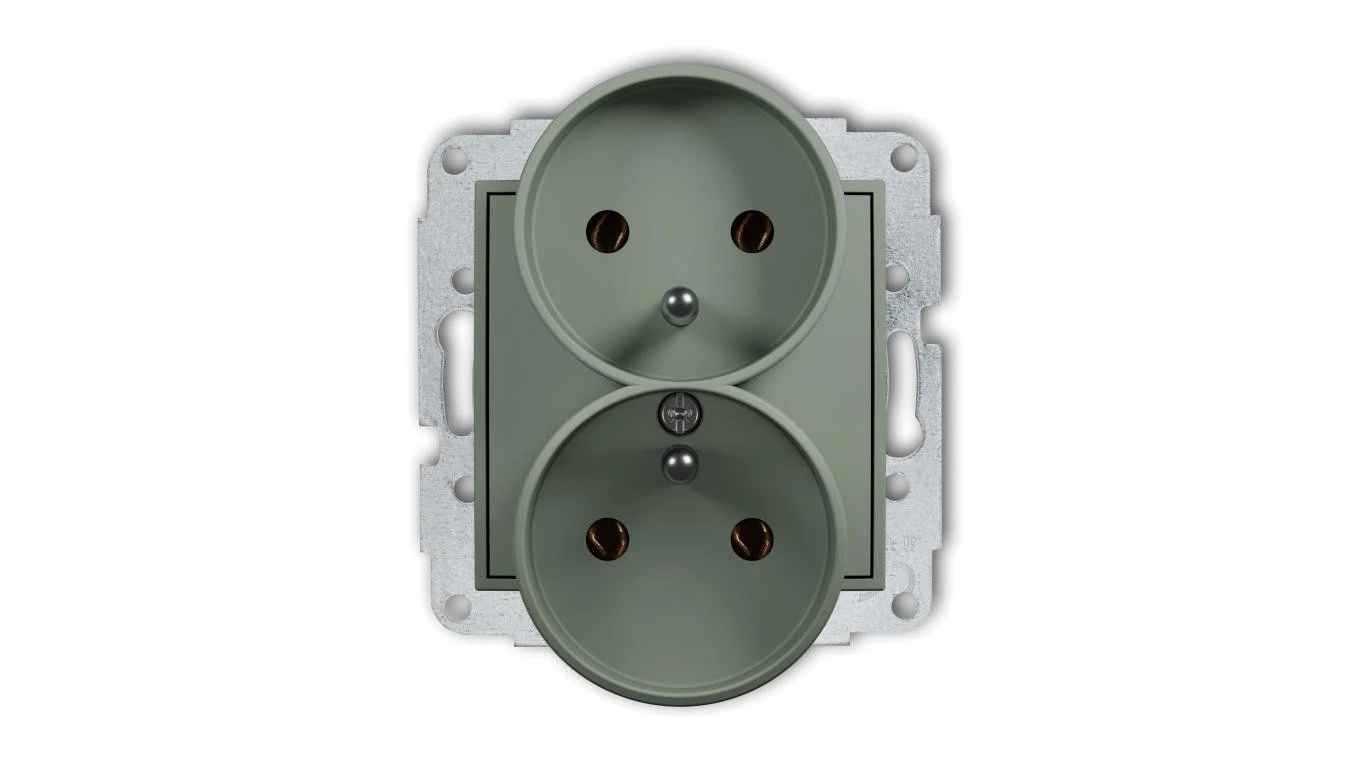 MINI Mechanizm gniazda podwójnego do ramki z uziemieniem 2x(2P+Z) (bez przesłon torów prądowych) szałwiowy 61MGPR-2z