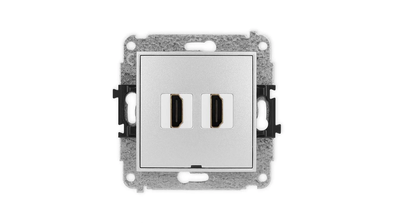 MINI Mechanizm gniazda podwójnego HDMI 2.1, 8K, bez pola opisowego srebrny metalik 7MHDMIBO-6