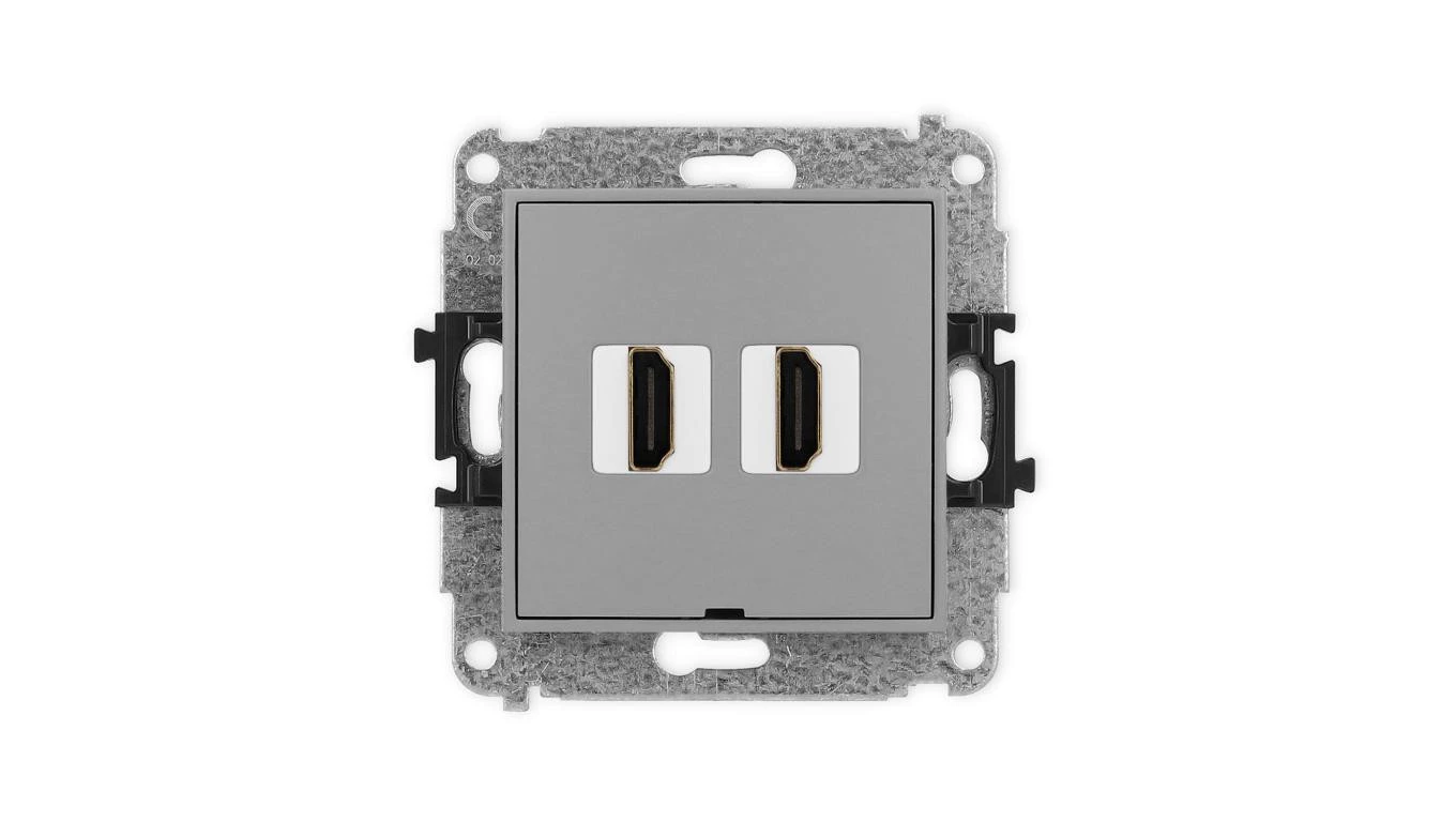 MINI Mechanizm gniazda podwójnego HDMI 2.1, 8K, bez pola opisowego szary mat 27MHDMIBO-6
