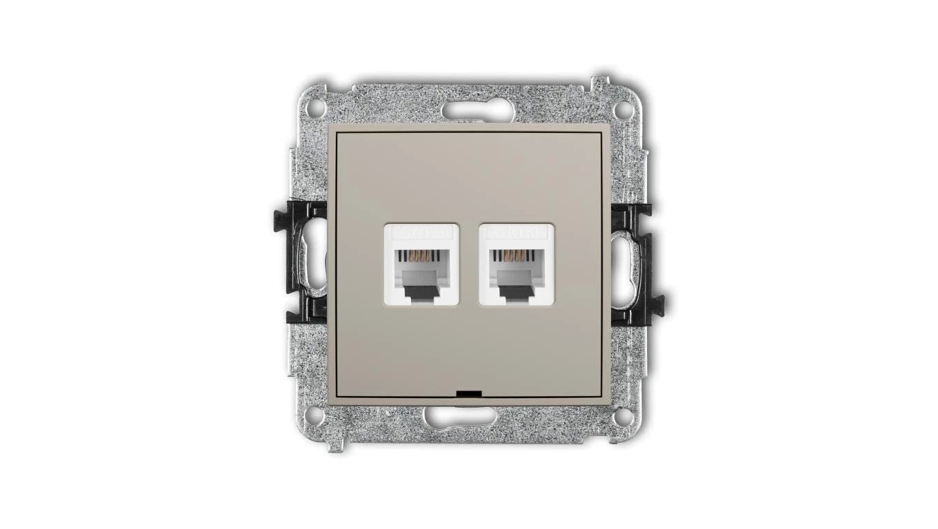 MINI Mechanizm gniazda telefonicznego podwójnego 2xRJ11, 4-stykowy, beznarzędziowe, bez pola opisowego taupe 60MGTBO-2