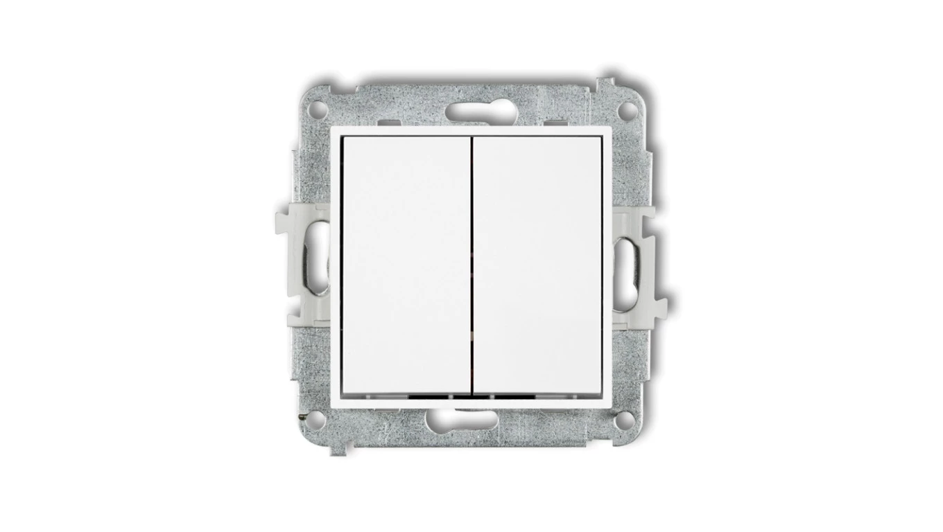 ICON Mechanizm łącznika jednobiegunowego ze schodowym (dwa klawisze bez piktogramów, osobne zasilanie) biały IWP-10.21
