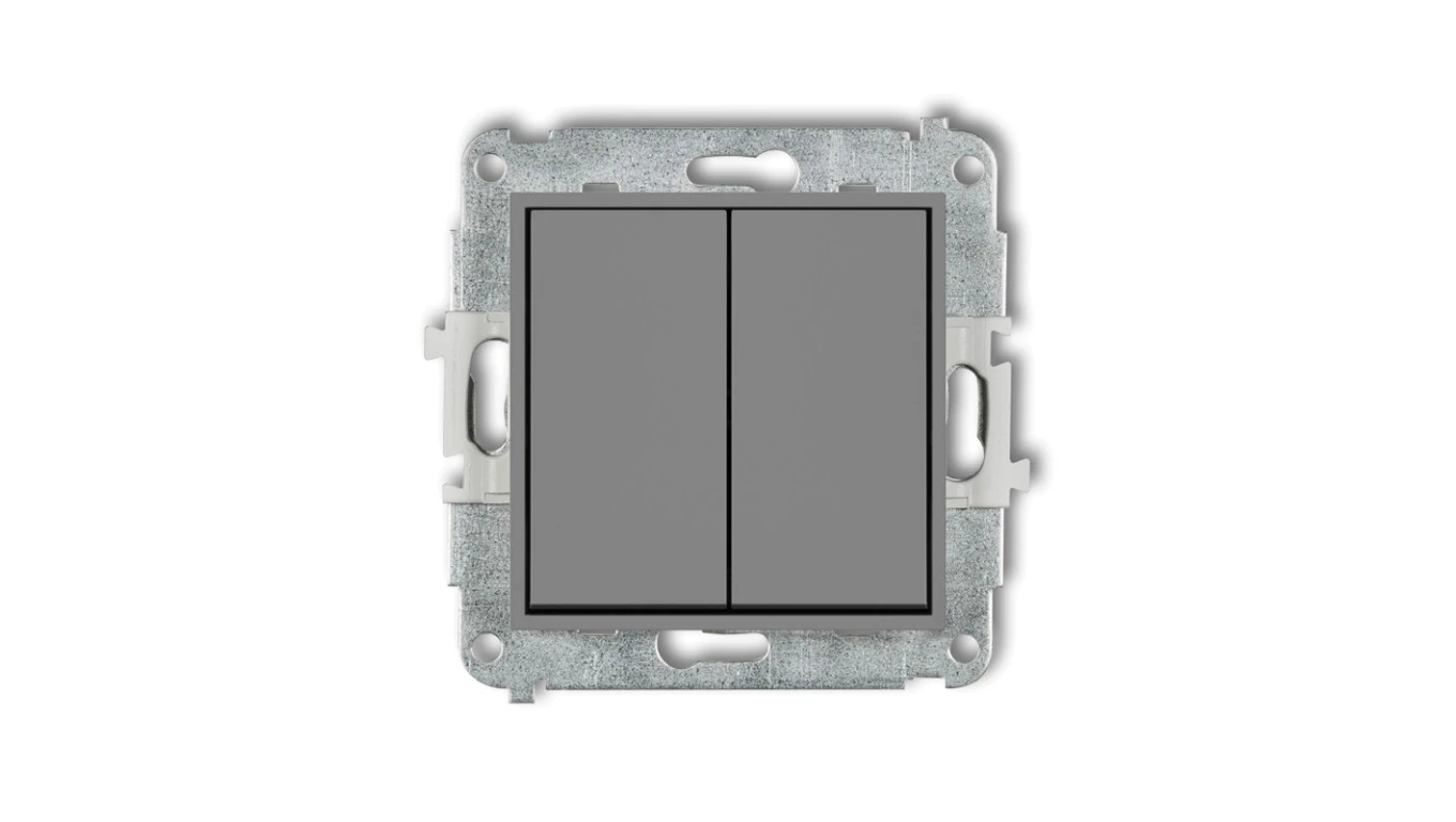 DECO Mechanizm łącznika jednobiegunowego ze schodowym (dwa klawisze bez piktogramów, wspólne zasilanie) szary mat 27DWP-10.11