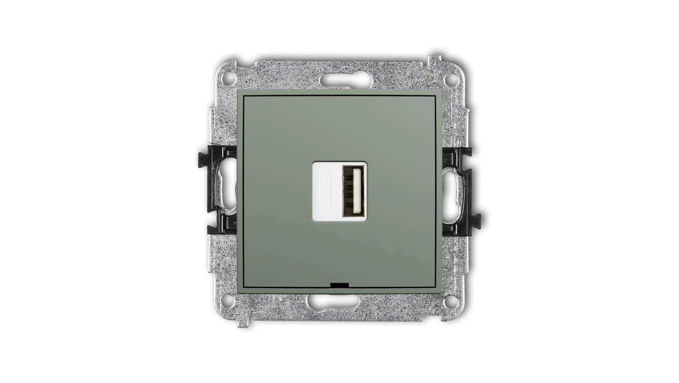 MINI Mechanizm ładowarki USB pojedynczej USB A, 5W max., 5V, 1A, bez pola opisowego szałwiowy 61MCUSBBO-1