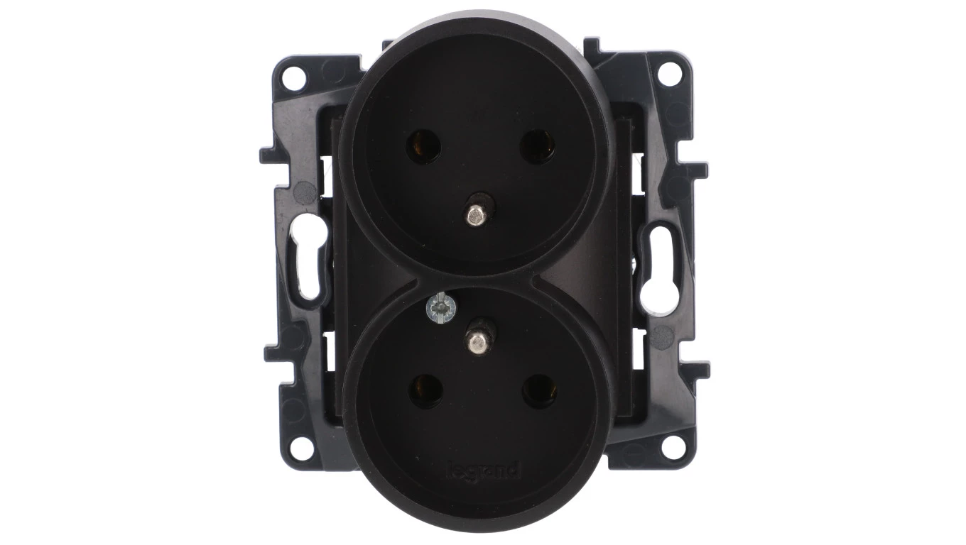 Niloe Step Gniazdo zasilające podwójne 2x2P+Z do ramek wielokrotnych, zaciski śrubowe, bez przesłony styków czarny 863532