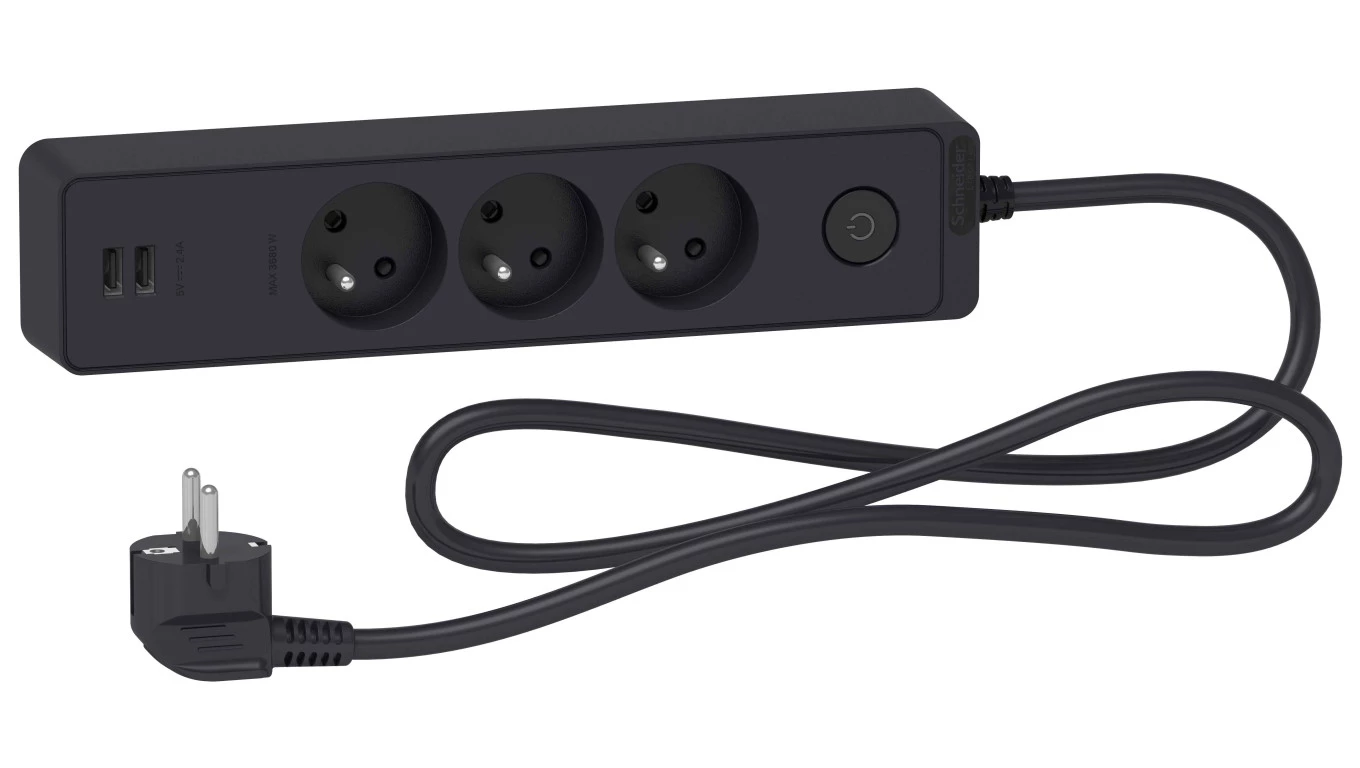 Odace Przedłużacz 3 gniazdowy z łącznikiem 2x USB, 1,5m antracyt ST933U1B