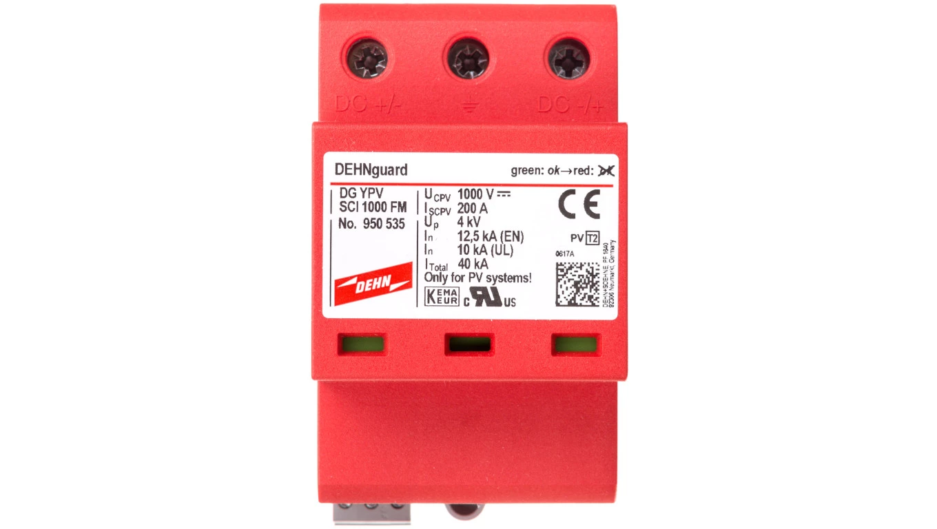 Ogranicznik przepięć C Typ 2 do ochrony instalacji PV 1000V DC 3P 12,5kA 4kV DEHNguard compact YPV SCI 1000 FM 950535