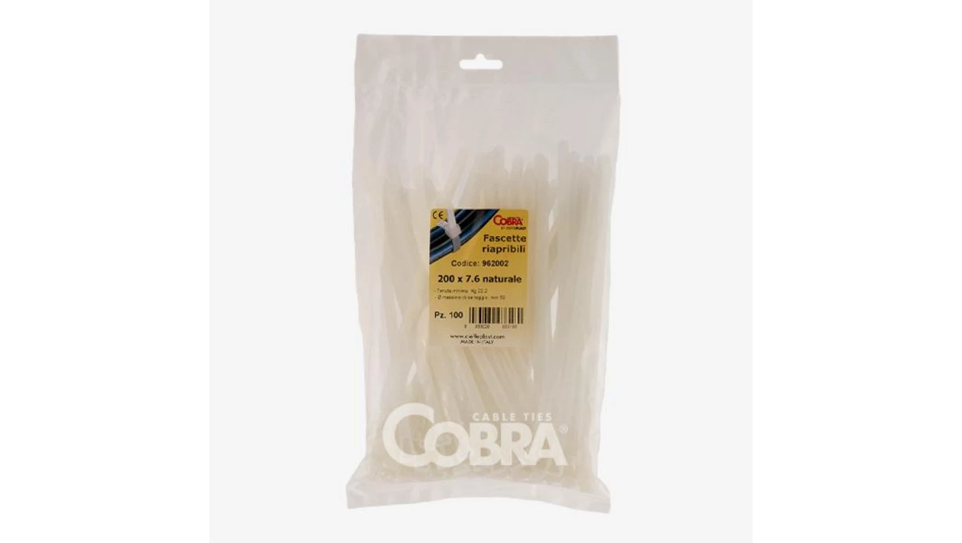 Opaska kablowa otwierana wielokrotnie biała 150x7.6 COBRA /100szt./ 962101