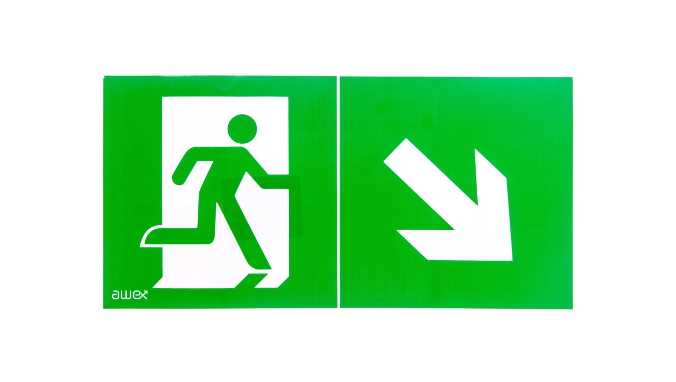 Piktogram 125x250 PS22 obrotowa strzałka człowiek w drzwiach logo awex (ISO7010)