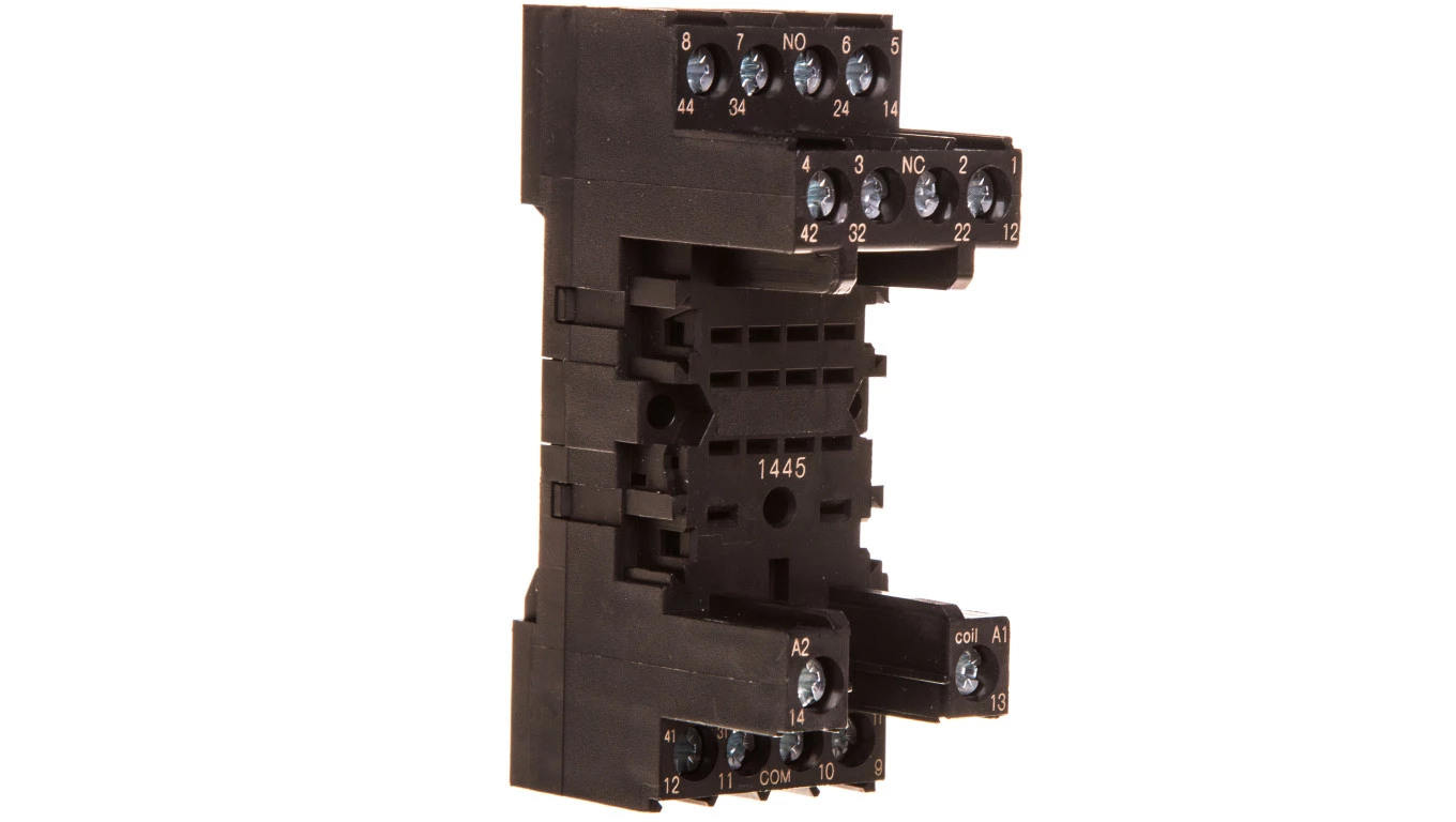 Gniazdo do przekaźników serii 40.51/40.52/40.61/44.52/44.62 zaciski śrubowe montaż na szynę DIN 35mm (klip metalowy) 95.65SMA