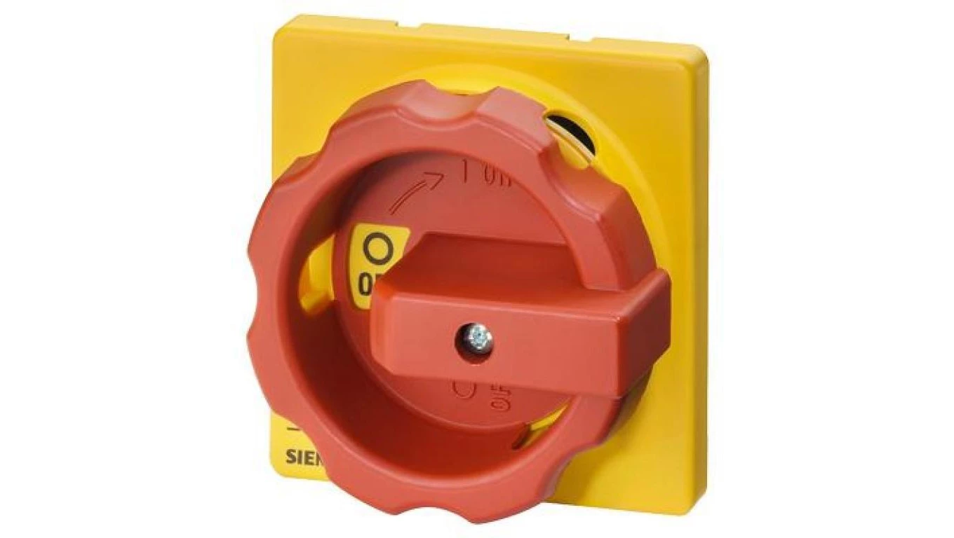 Rozłącznik główny/awaryjny 3P 16A 7.5kW AC23A 400V montaż na płycie z wałkiem pokrętło żółto-czerwone 4 otwory 3LD2013-0TK53