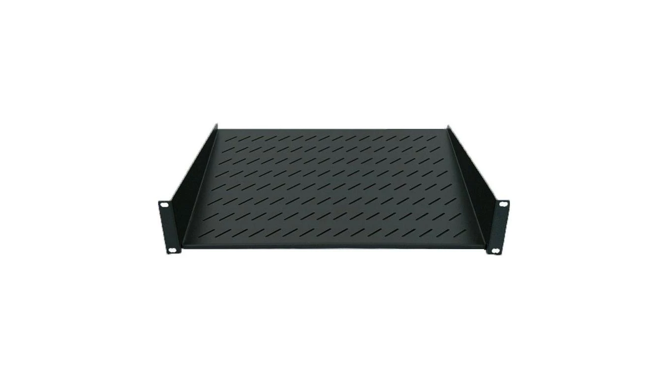Półka 1U 150mm rack 19, 2 pkt mocowania, perforowana, czarna