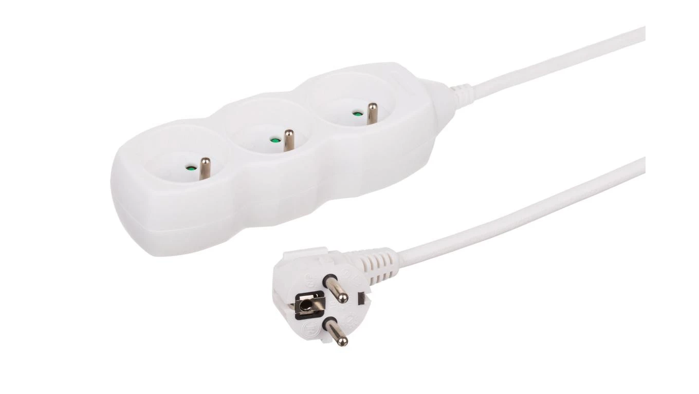 Przedłużacz 3-gniazdowy, 3m biały, 3x1,0mm OWY 34330