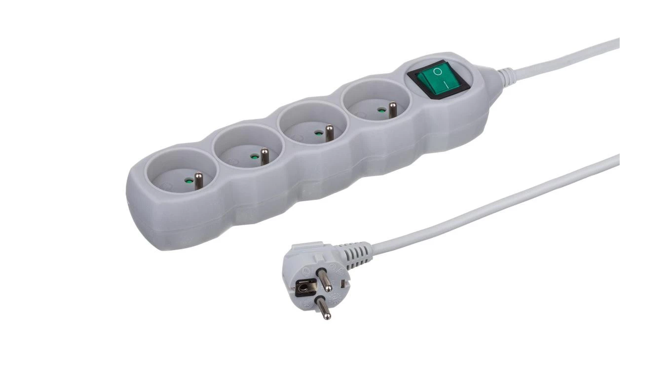 Przedłużacz 4-gniazdowy, 5m szary, z wyłącznikiem, 3x1,0mm OWY 24385